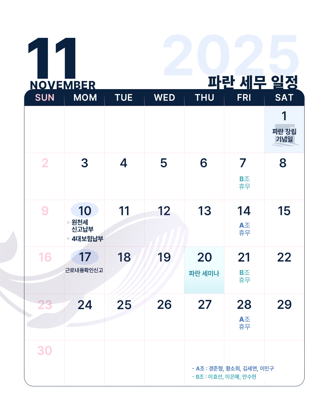 📌 11월 1일(토) : 세무법인 파란 창립기념일 💙