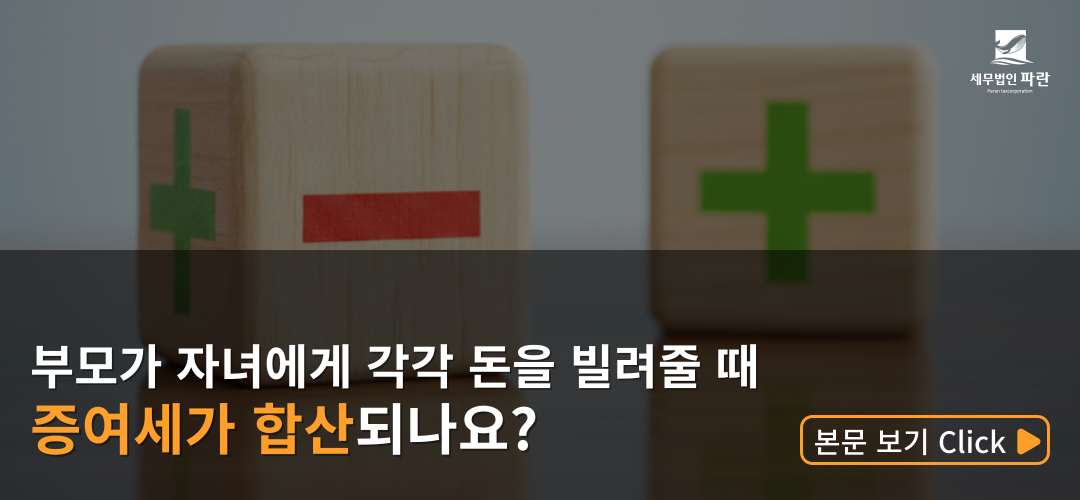 이때 부모가 각각 자금을 대여해 줄 경우, 증여세 과세가액이 합산되는지 확인해 보겠습니다.
