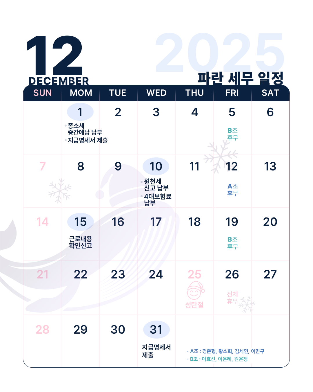 📌 12월 26일 (금) : 파란 전체 휴무 ❤️